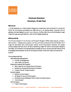 Job Post – Contract Assistant – Honolulu, HI 2508